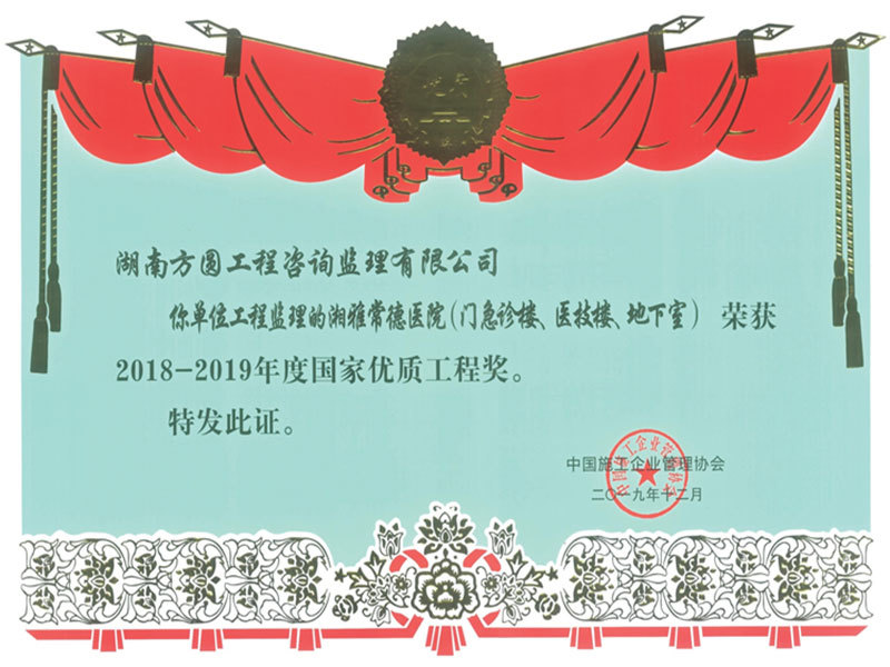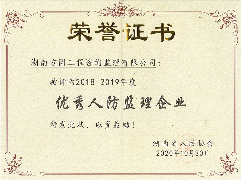2018-2019年优秀人防监理企业荣誉证书 观看